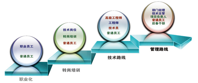 公司為員工提供多種選擇的職業生涯規劃。包括管理路線、技術路線、轉崗培訓和職業員工評定等
